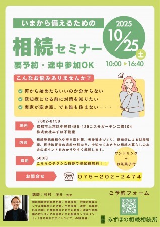 10月25日(土)、みずほ不動産では「相続セミナー」を開催いたします。