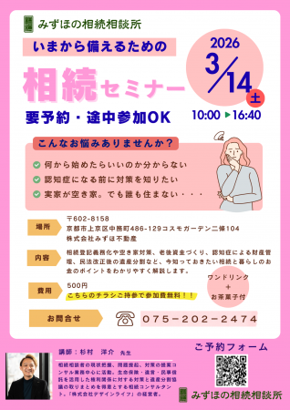 3月14日(土)、みずほ不動産では「相続セミナー」を開催いたします。
